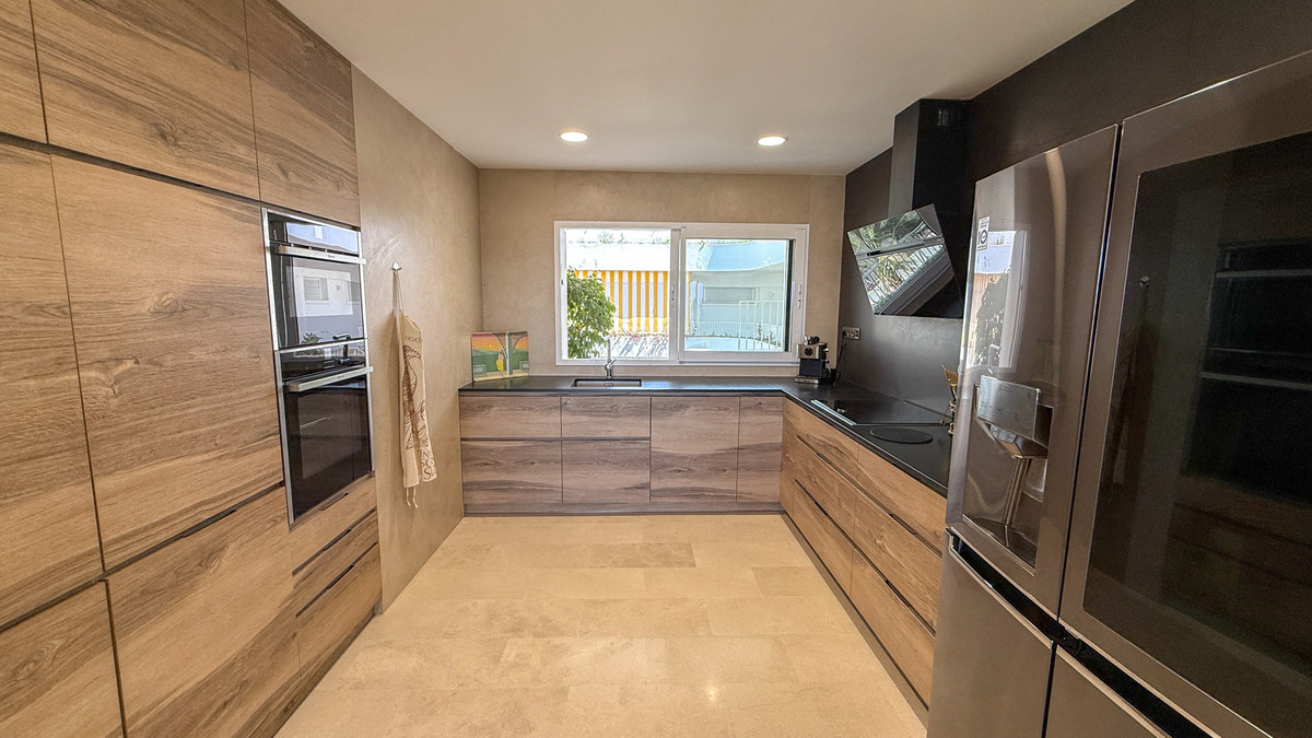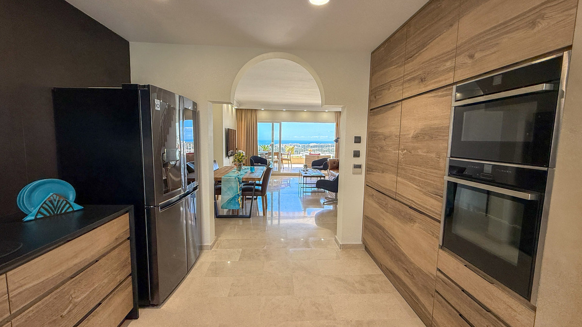 Modern, fully equipped kitchen with premium appliances and breakfast area