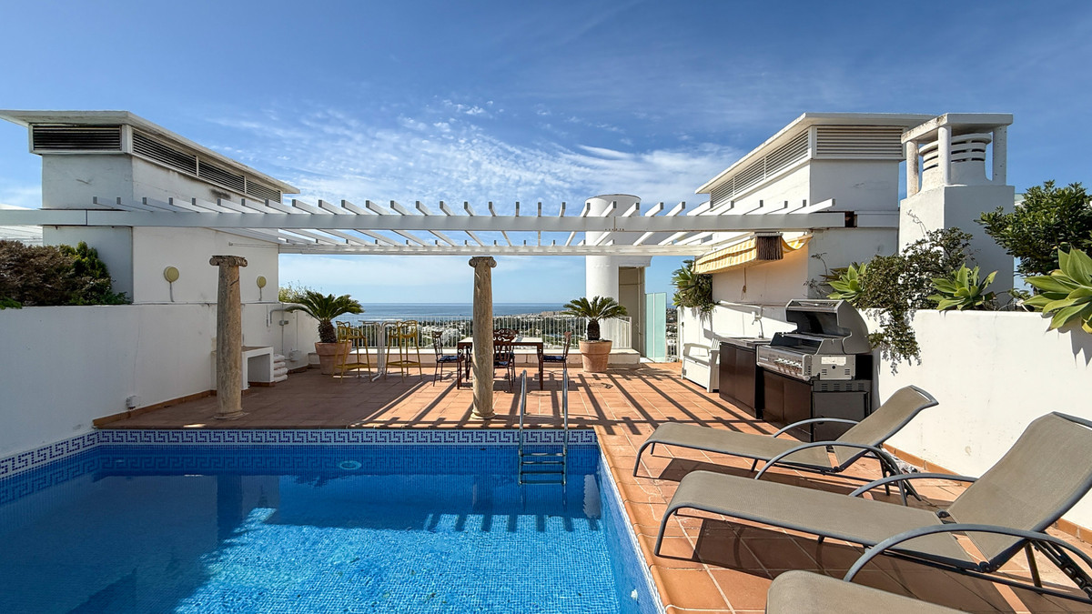 Located within the prestigious gated community of Terrazas de las Lomas de Marbella Club, this stunning 3-bedroom duplex penthouse offers an exceptional opportunity to enjoy the Marbella lifestyle during the winter months. Available exclusively for short-term rental during December, January & February, the property is designed for those seeking luxury, privacy, and comfort in one of Marbella’s most sought-after locations.
